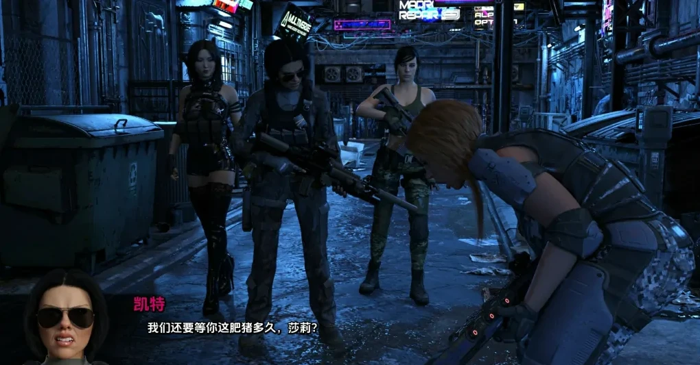 在这座黑暗的赛博朋克未来城市中,男性受到歧视,而女性则统治一切。