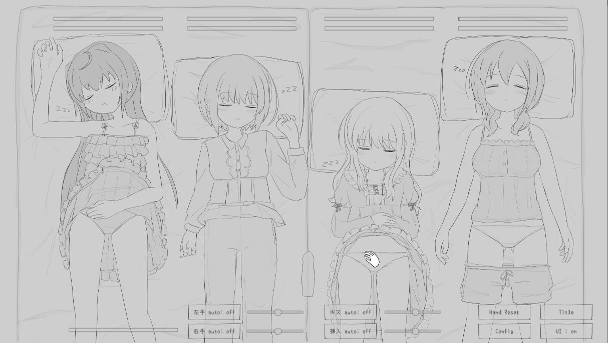 这是【エロフラ部】在23年5月26日发布的一款互动触摸SLG游戏。游戏以黑白线稿的风格手绘制作,但是玩法却是相当的赤鸡和社保~本作属于睡眠侵饭玩法。
