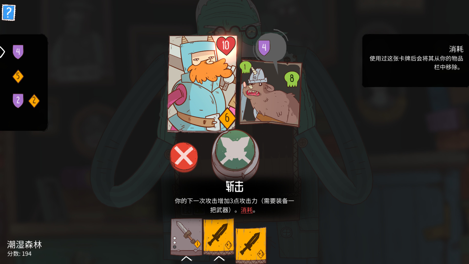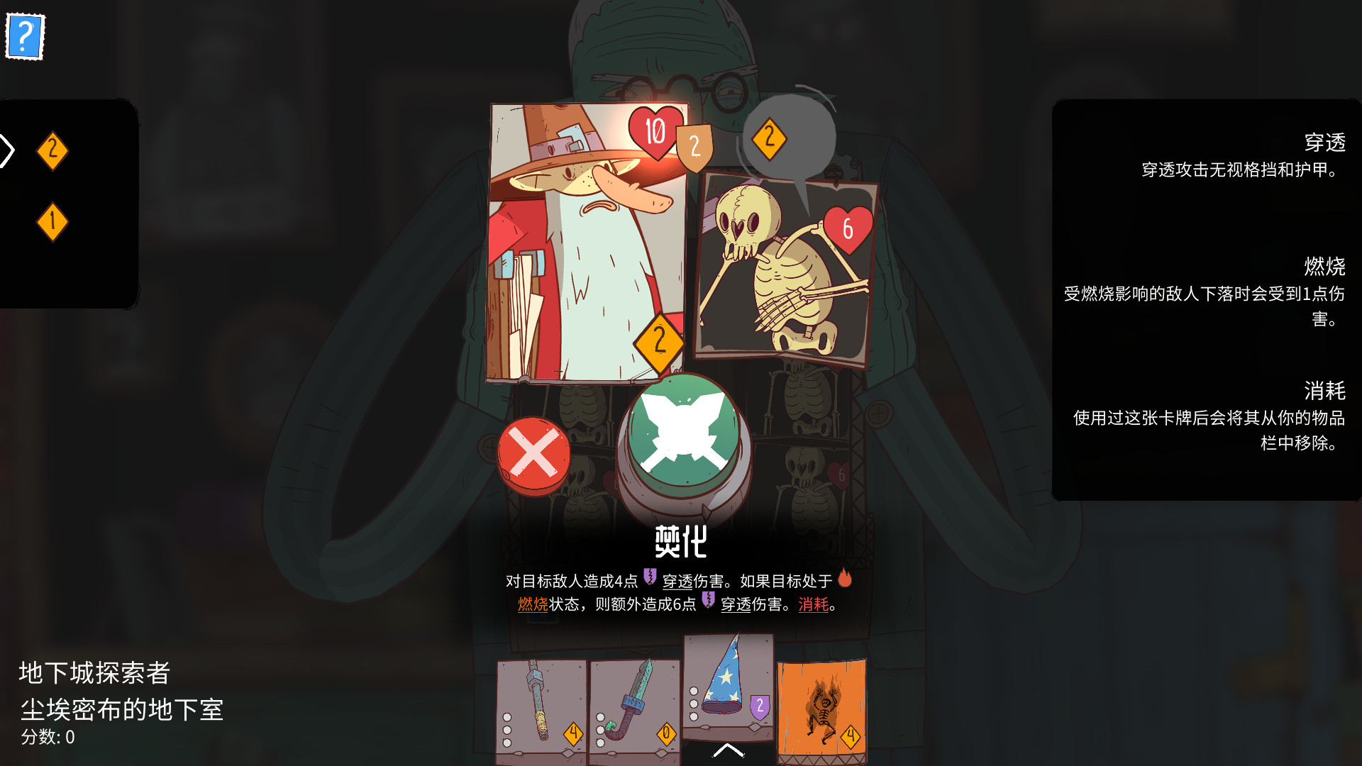 你的英雄会携带一套基础牌组(物品和技能)踏入地下城。