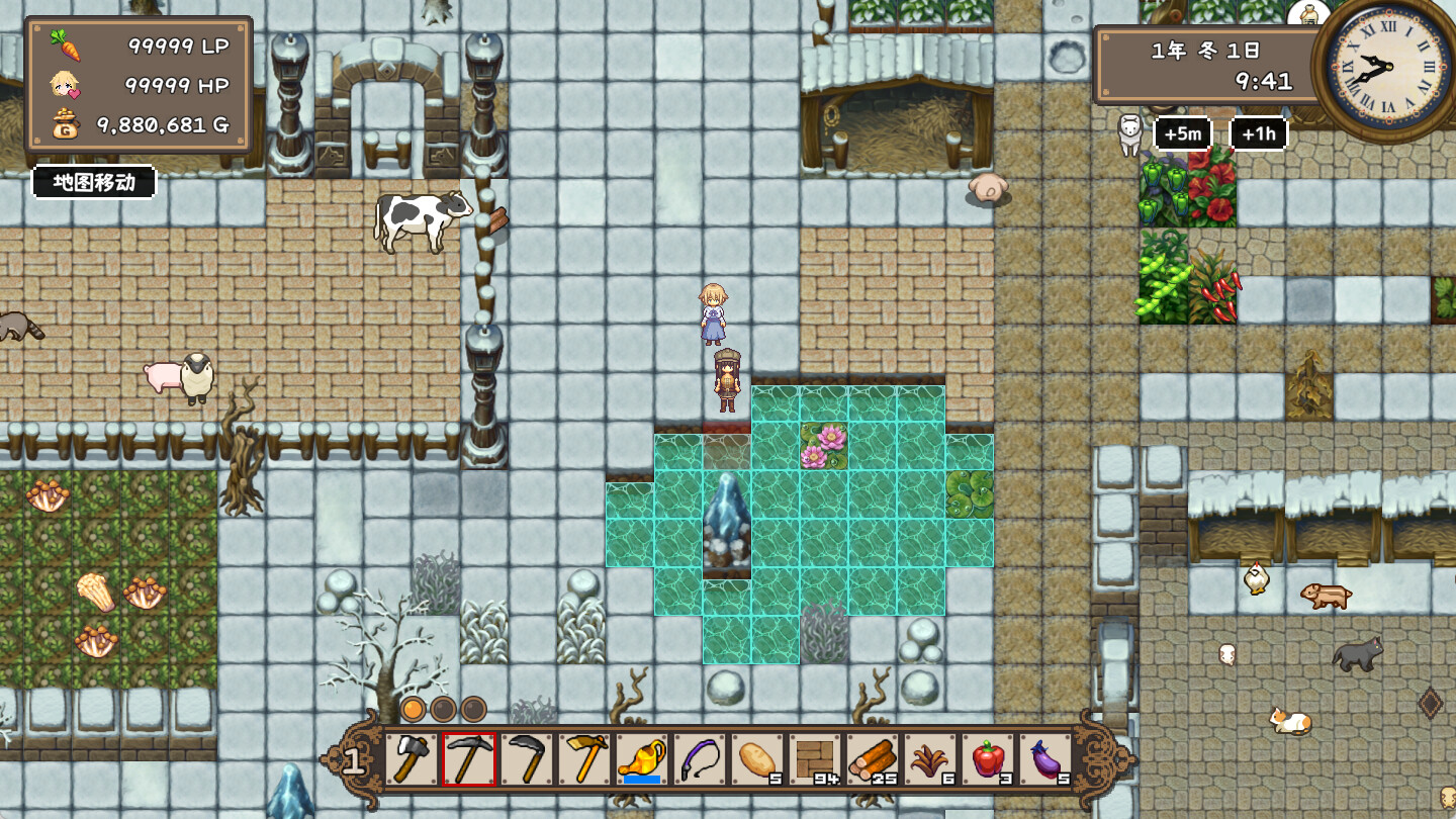 游戏提供种类繁多的物品可供收集,包括(但不限于)蔬菜、水果、矿石、鱼类、蘑菇,甚至动物!