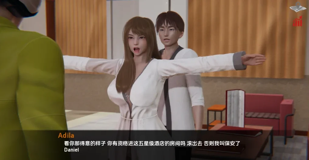 发现房间里妻子披着浴衣和一个男生在一起。